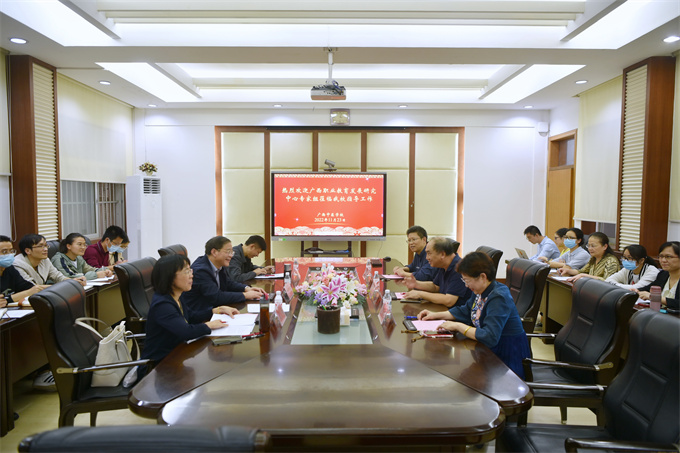 为了更好地做好在研项目的研究服务工作,提高研究水平。beat365于2022年11月23日下午举办了2022年度广西职业教育教学改革研究课题开题报告会,邀请广西职业教育发展研究中心王屹教授、唐锡海教授、蓝洁教授进行现场指导。专家们对beat365已立项的课题进行了详细指导,为课题的顺利开展奠定了良好的基础;同时,对学校教育教学研究工作取得的成绩给予高度的评价。