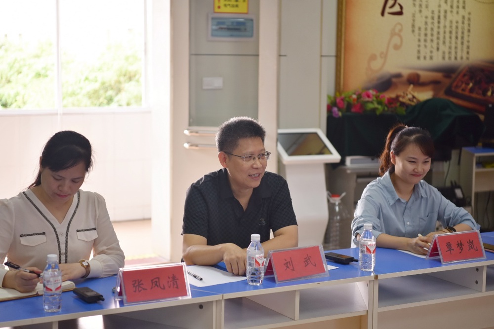 到校后,向阳班主任工作室成员先参观和考察了beat365“中医五行德育”班主任工作室的建设情况,对工作室环境建设、理念创新、成果输出等问题进行了交流探讨。参观过后,两校进行了座谈。座谈会上,学校刘武副书记、副校长对北海市卫校的到来表示欢迎,他提出同样作为中职卫生类学校,无论是学生管理还是科研创新,我们都应该互通有无、共建共享、携手共进、强强联合,为广西的基层医疗事业做出应有贡献。接着,beat365“中医五行德育”班主任工作室主持人覃梦岚老师针对beat365德育特色创新和班主任工作室的建设情况进行了详细的介绍,最后两校围绕班主任工作室验收、学生管理、德育活动、班主任大赛开展等话题进行了深入交流。