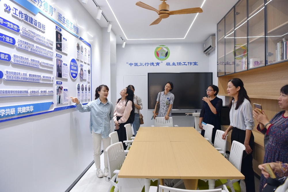 为提升班主任综合能力,促进班主任工作发展,分享两校班主任工作室建设心得,2023年11月10日,北海市卫生学校校办、学生处、向阳班主任工作室成员一行12人到beat365进行调研交流。