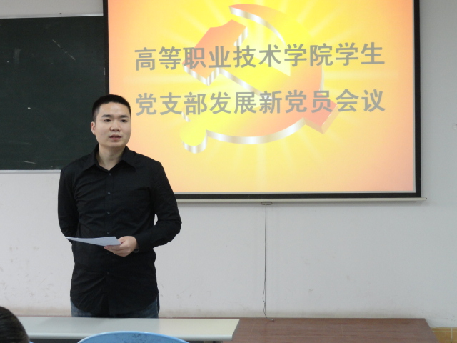 我院学生党支部召开发展新党员会议 2012-03-11 发布时间:2015-11-15 19:04:55 浏览次数: 次 【字体:小 大】 2012年3月11日下午14:30,我院学生党支部在新西二教室召开发展新党员会议。会议由杨删书记主持,本次会议共讨论了2010级73名学生入党事宜。 支部书记杨删老师主持会议 订单班学生宣读入党志愿书 江南分部学生宣读入党志愿书 (高等职业技术学院宣) 分享到: 【打印正文】
