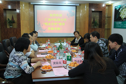 2014年4月23日,罗伟生副校长带领高职处(院)邓远美处(院)长、杨仕权副处(院)长及各科科长一行6人,赴柳州桂中大药房连锁有限责任公司开展校企合作交流活动。