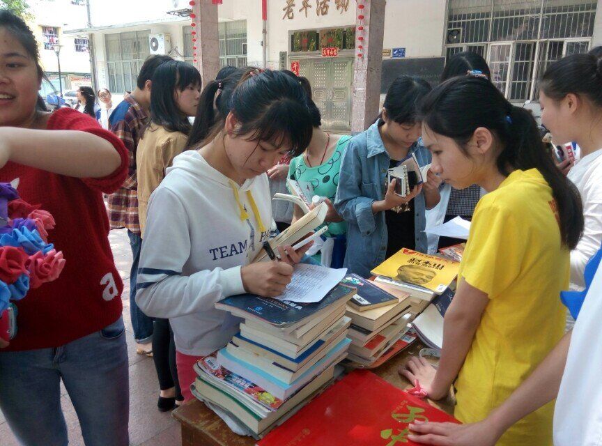 高职院学生在明秀校园开展免费书籍借阅、学生互爱互助活动