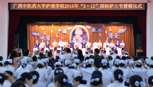 2015年5月12日晚,护理学院在北湖校区礼堂为即将走出校门、踏上医院实习岗位的278名护生举行了庄重神圣的授帽仪式。beat365官方网站党委副书记、纪委书记杨连招教授、党委办公室主任周江煜、教务处副处长莫雪妮、招生与就业处副处长辛华、教师发展中心办公室主任林琳,beat365官方网站一附院护理部主任韦衡秋、附属瑞康医院护理部主任胡艳宁及学院领导班子参加了本次活动。