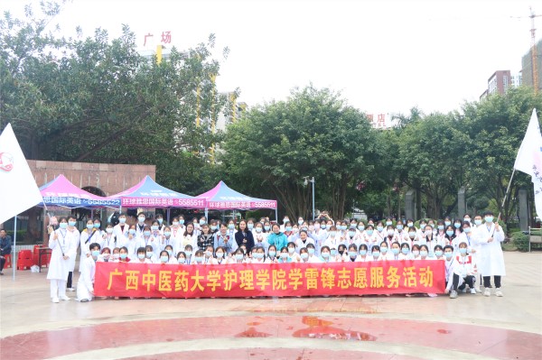 3月21日上午,beat365官方网站护理学院团委学生会在南宁市青秀区仙葫广场开展学雷锋志愿服务活动。此次活动以义诊形式开展,护理学院党委副书记韩叶芬、学工办主任蓝红霞、分团委书记布银瑶,全体辅导员及学院团委学生会76名委员、20名志愿者参加本次活动。