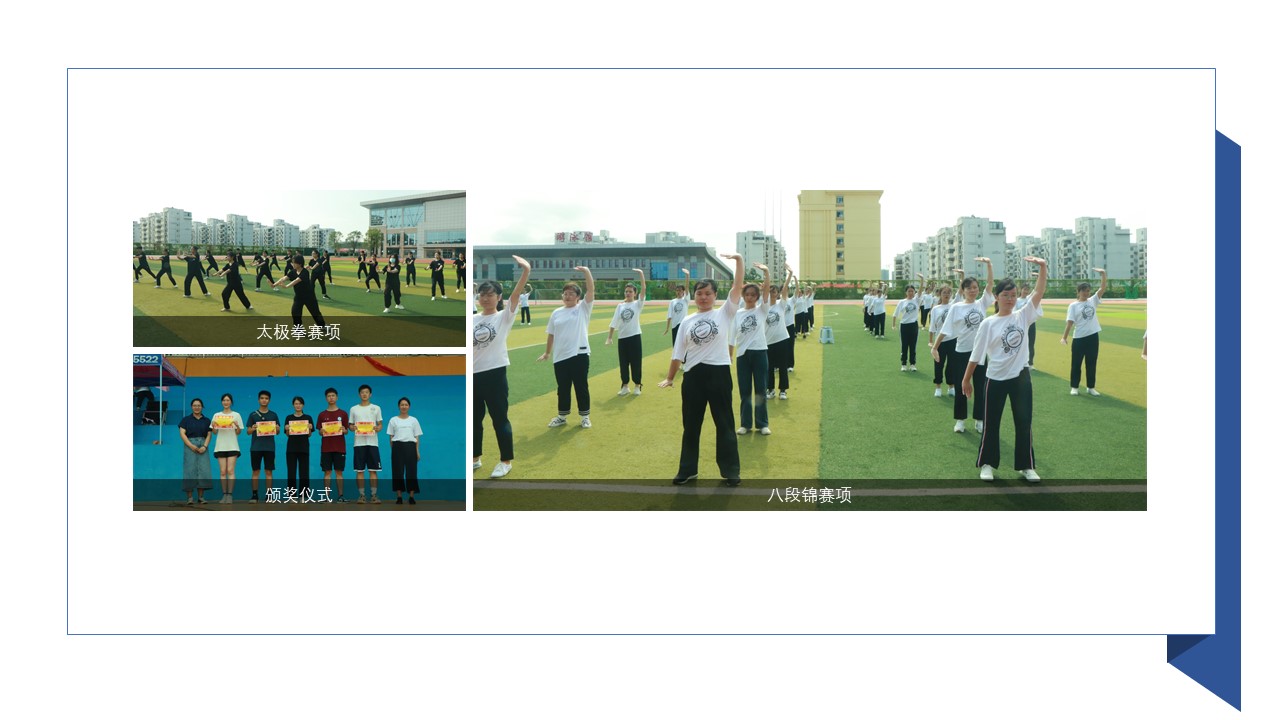 运动会上,运动员们头顶骄阳,着装整齐,步调一致,沉着应赛,在一招一式中展现太极拳柔和轻灵、太极剑的刚柔并济、三路长拳的强劲有力、八段锦的轻缓舒展,将传统保健运动的魅力展现得淋漓尽致。在同学们的努力下,2020级护理学2班获得团体一等奖,2019级助产学1班获得团体二等奖,2019级护理学4班获得团体三等奖。