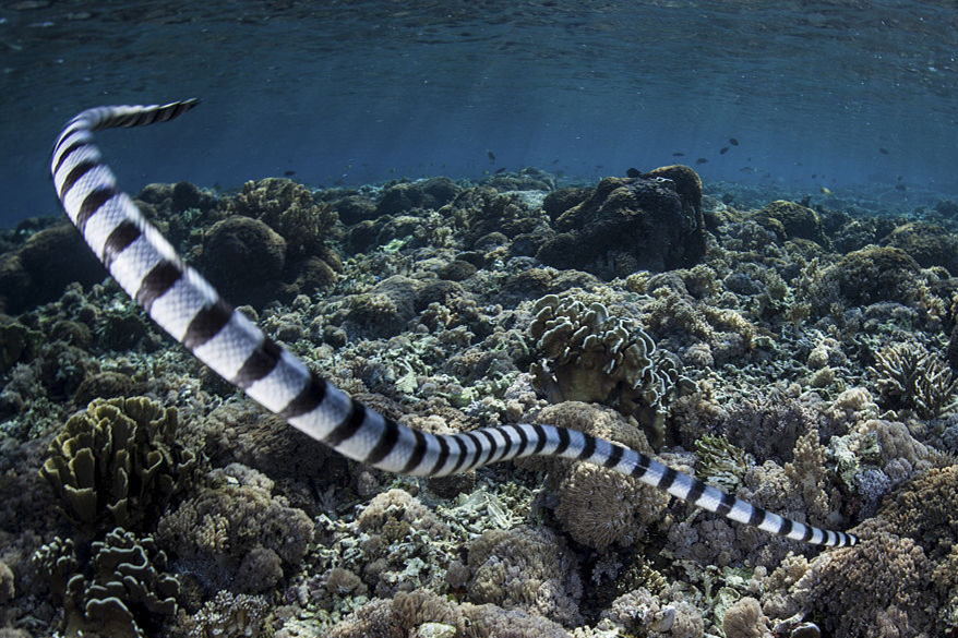 环纹海蛇 来源:海洋药物研究院 作者:hlh 发布时间:2019-01-14 09:14:09 浏览次数: 次 【字体:小 大】 环纹海蛇(学名:Hydrophis fasciatus)是一种有剧毒的蛇类,为眼镜蛇科海蛇属的爬行动物。分布于印度、缅甸沿海、泰国湾、菲律宾、印度尼西亚、新几内亚沿海以及中国大陆的广西、广东、海南、福建沿海等地。 分享到: 【打印正文】