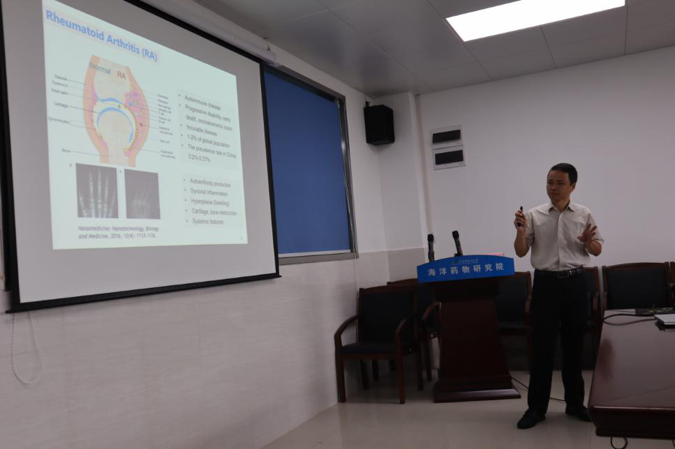 2019年10月10日,为了营造浓厚的学术氛围,加强学术交流,拓展学术领域,海洋药物研究院特邀请澳门大学何承伟副教授来beat365做专题讲座,讲座题目为:烟豆抗类风湿性关节炎的物质基础及分子机制。