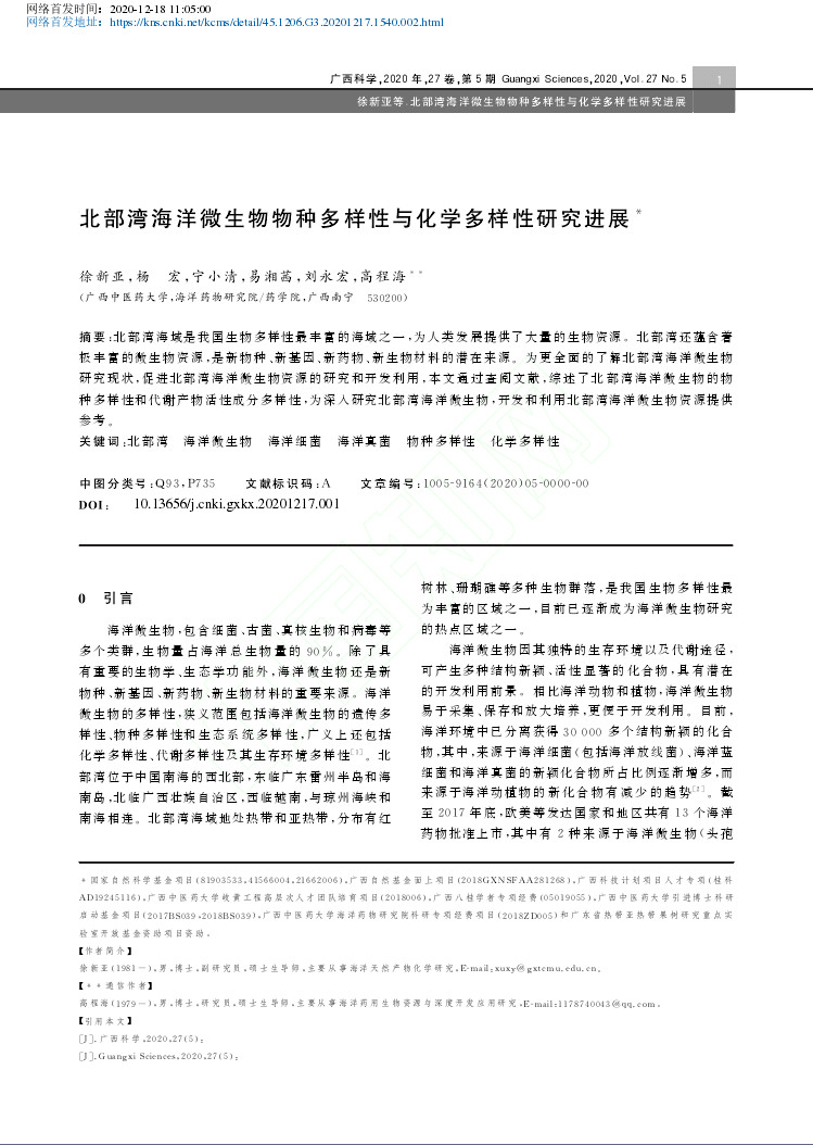 2020-北部湾海洋微生物物种多样性与化学多样性研究进展