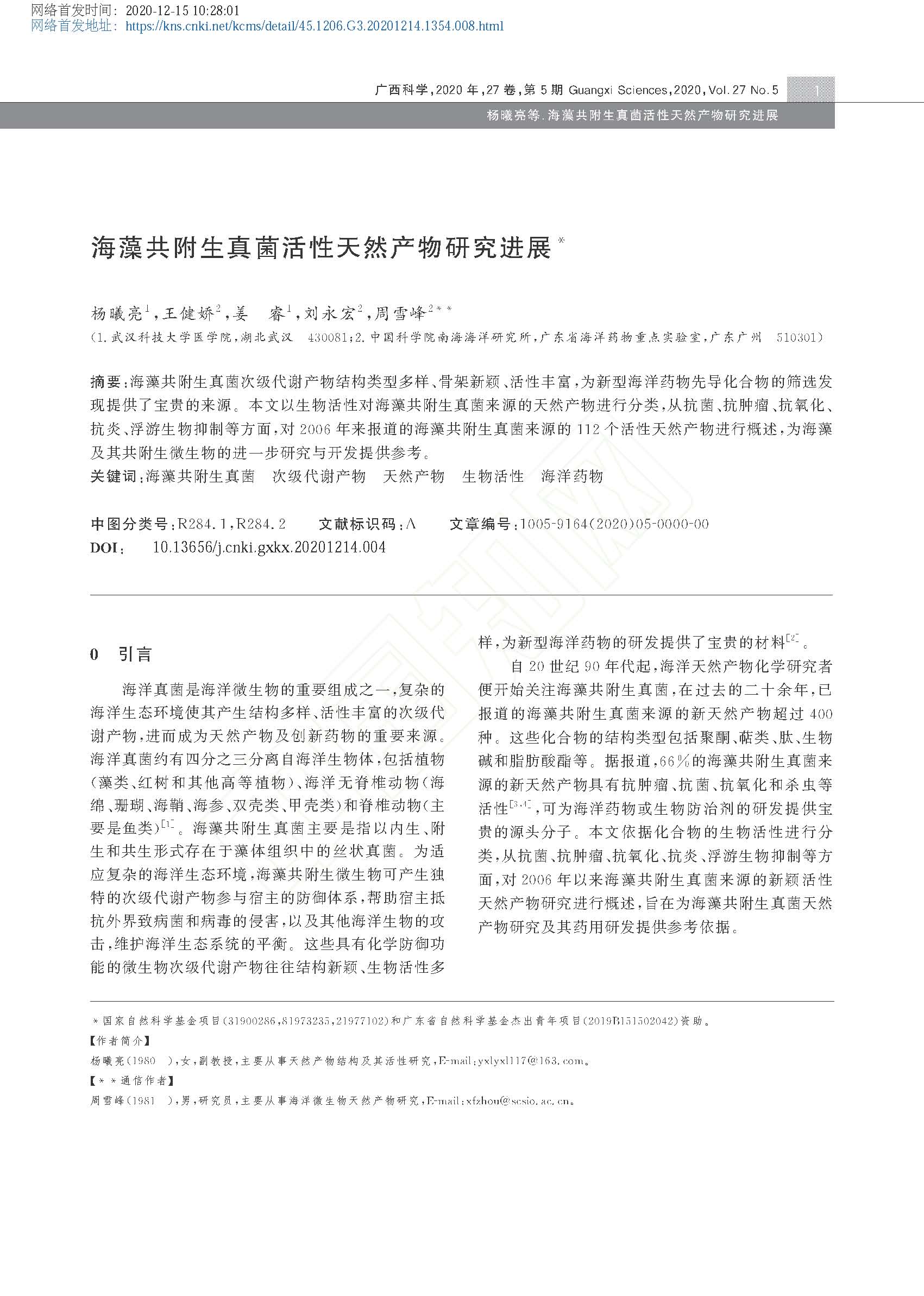 2020-海藻共附生真菌活性天然产物研究进展
