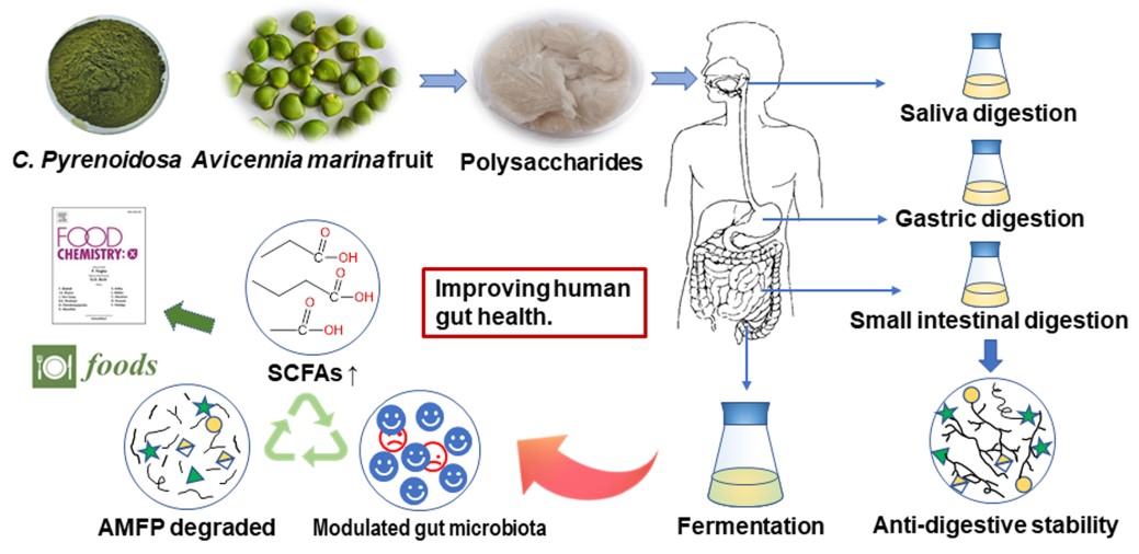 天然来源多糖及低聚糖具有良好的生物活性及益生功效,目前已有数种多糖和低聚糖如云芝多糖、菊粉(Inulin)、低聚果糖(FOS)、低聚半乳糖(GOS)、低聚木糖(XOS)、低聚乳果糖(LACT)、大豆低聚糖(SOS)等益生元产品愈来愈广泛地被应用于食品、药品等领域。海洋植物资源丰富,是结构新颖独特的糖类益生元的重要源泉。beat365官方网站海洋药物研究院海洋大健康产品开发研究室袁清霞博士长期从事海洋中药新颖多糖及低聚糖的发掘及功效评价研究,近期在海洋糖类新型益生元开发与利用方面取得进展。