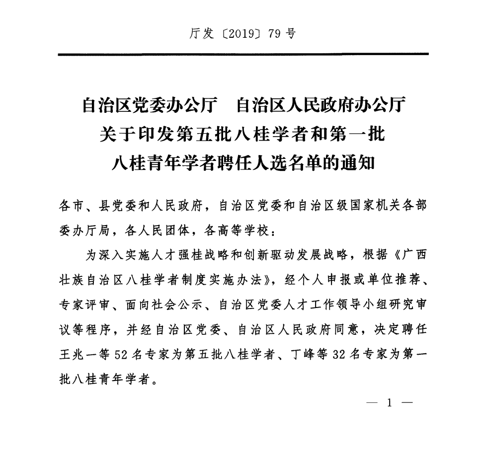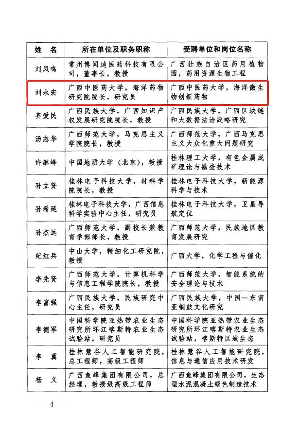 近日,中共广西壮族自治区委员会办公厅、自治区人民政府办公厅印发第五批八桂学者和第一批八桂青年学者名单,beat365官方网站海洋药物研究院院长刘永宏研究员受聘为广西第五批八桂学者。
