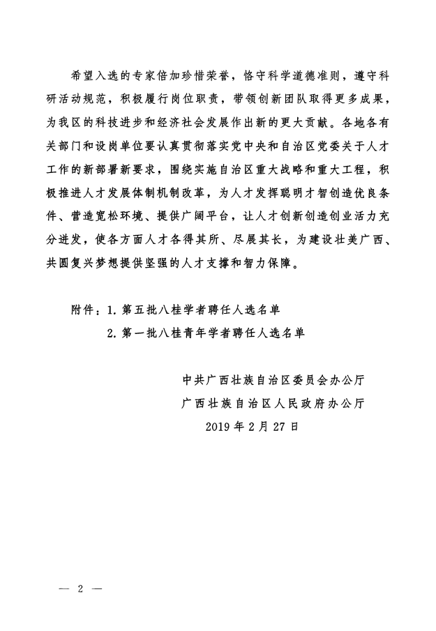 八桂学者和八桂青年学者岗位是自治区党委为深入实施人才强桂战略、加强我区高层次领军人才队伍建设的一项重大举措。自治区委员会办公厅文件显示,经公开申报、设岗单位推荐、同行专家通讯评审、综合评审委员会会议评审、自治区党委人才工作协调小组研究审定、向社会公示等程序,共有52人受聘广西第五批八桂学者,32人获聘广西第一批八桂青年学者。