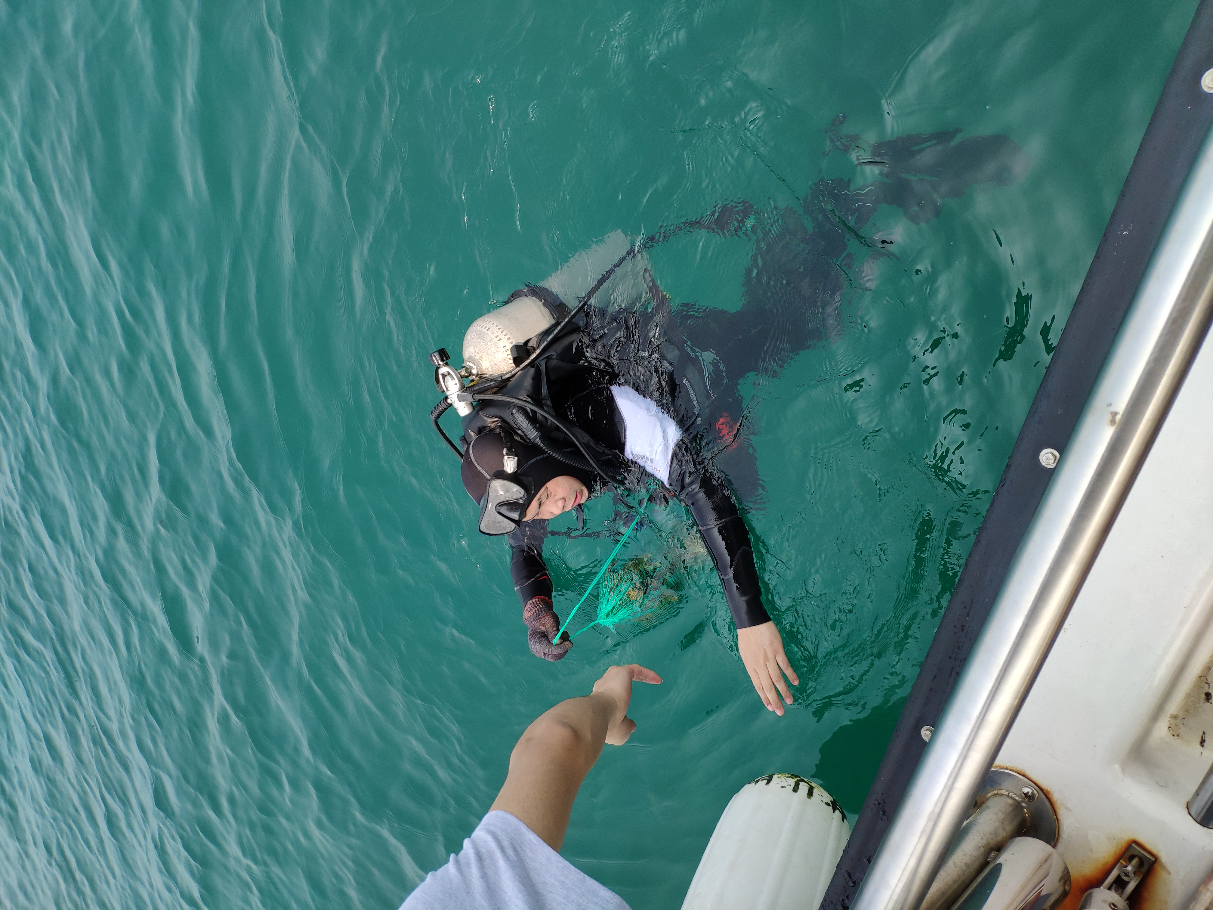 本次调查由15人组成,于3月19日起航,历时3天。调查分成2个调查小组,调查一组在我院常务副院长的带领下,潜入海底,采集了珊瑚、海参、海绵等生物样本;调查二组在徐新亚副研究员的带领下,深入海边礁石浅滩,采集了海蟑螂、马尾藻、石莼等生物样本并现场测试数据,获取了相关研究样品。