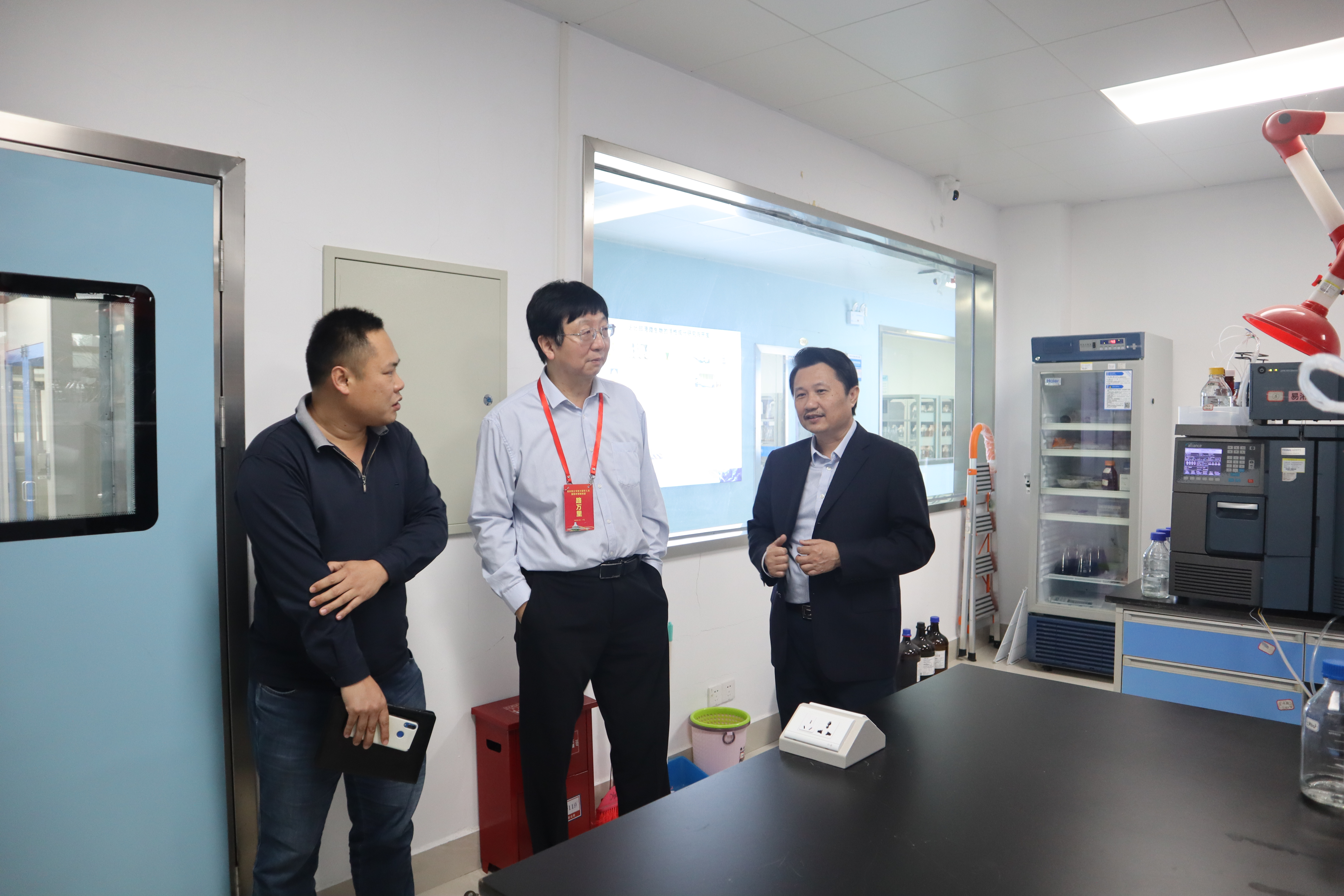座谈会后,路万里还到我院进行参观考察,就海洋药物研究进行交流指导,了解了我院平台建设情况、研究方向、科研成果等内容,在海洋中药、海洋药物新药研发等方面提出了建设性的意见,对我院进行海洋创新药物的开发研究工作表示肯定。