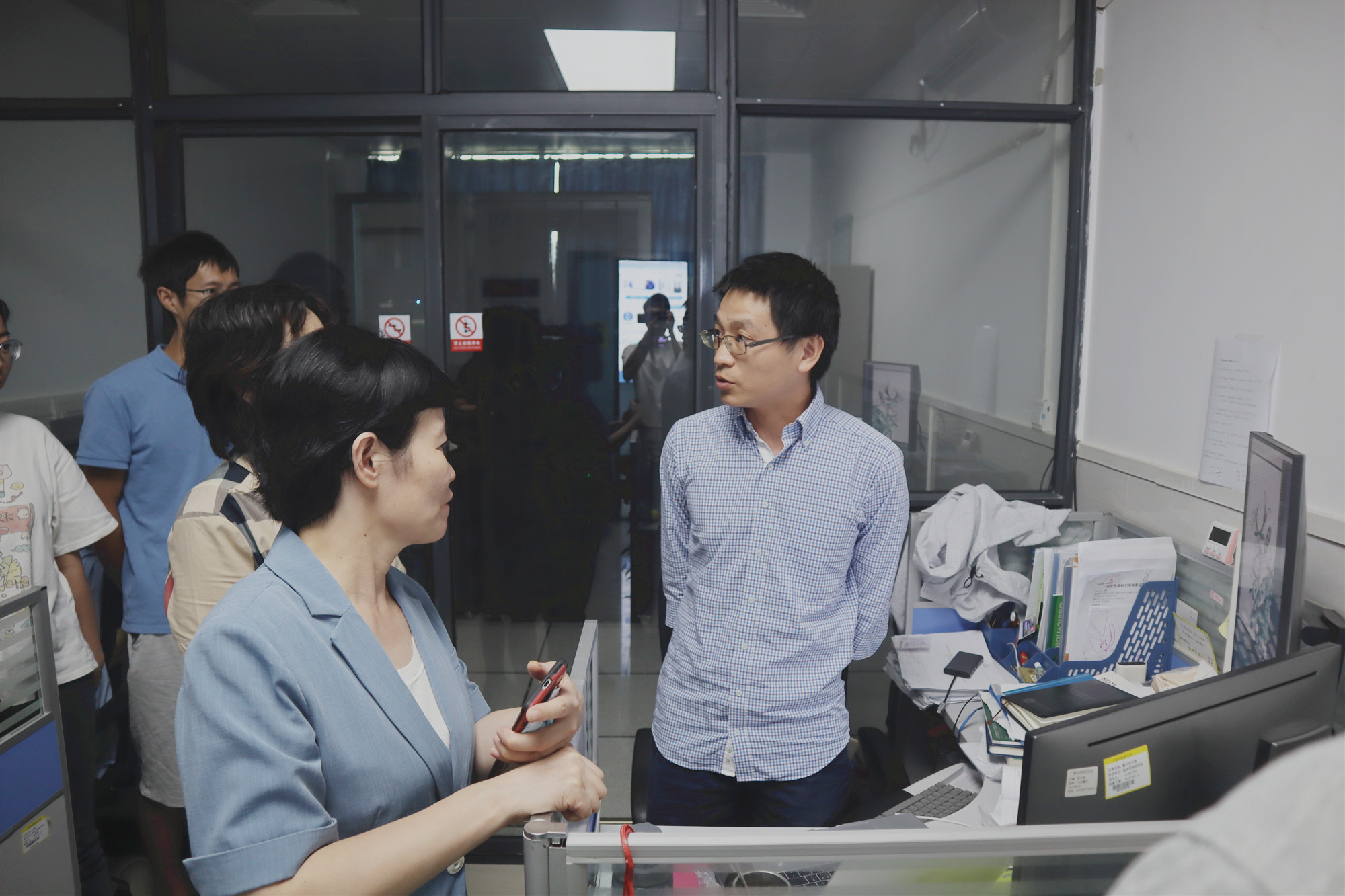 最后我院刘锴老师向朱卫丰校长介绍计算机辅助结构确证高性能计算系统在药物靶向分子设计方面的运用及成效。