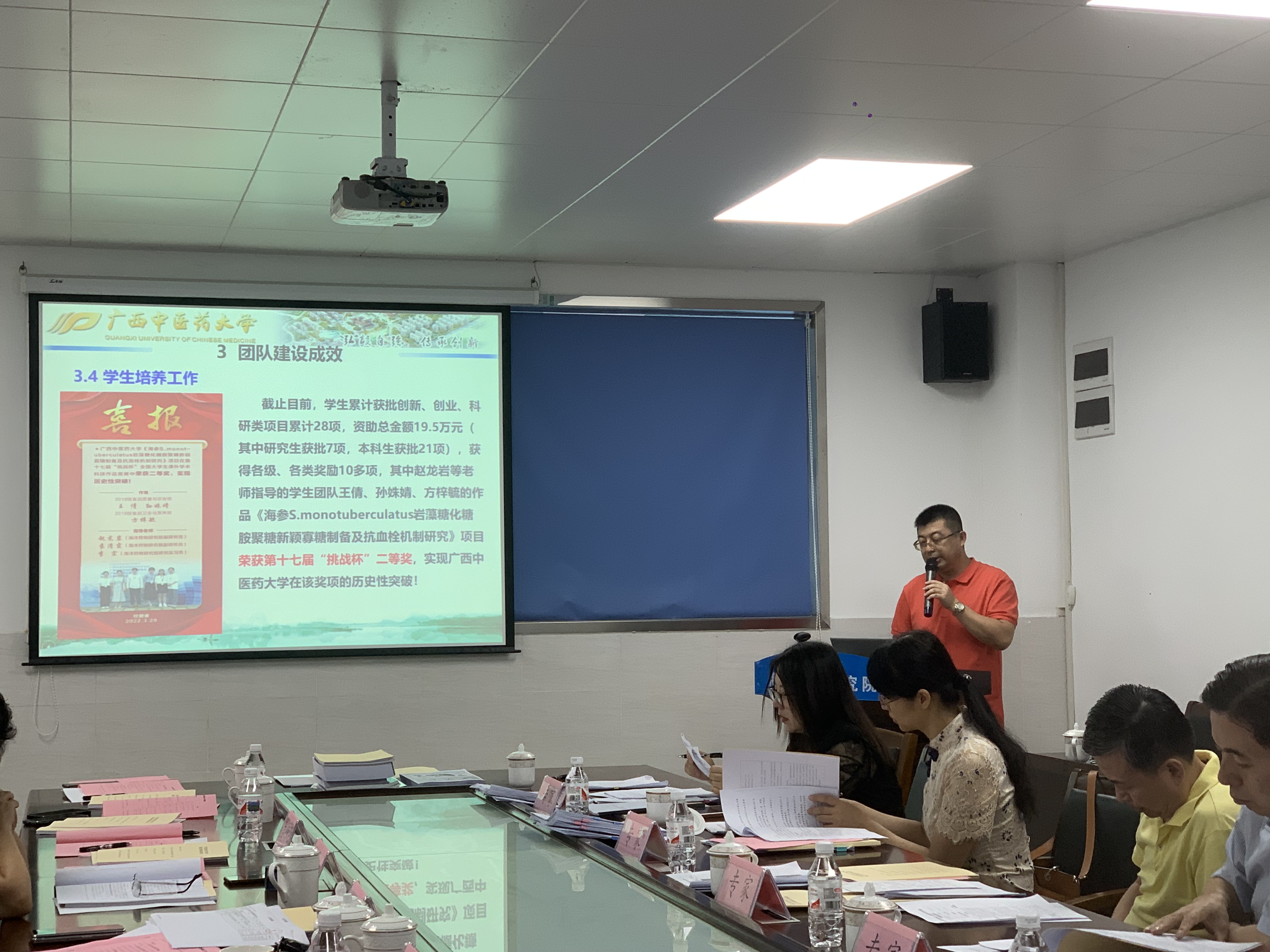 汇报会上,学校党委副书记庞宇舟对考核专家组的莅临指导表示欢迎。人事处处长、人才办主任黄燕就学校设岗管理与服务保障等工作进行汇报。八桂学者刘永宏研究员就团队建设举措、成效等履职履约情况进行汇报。