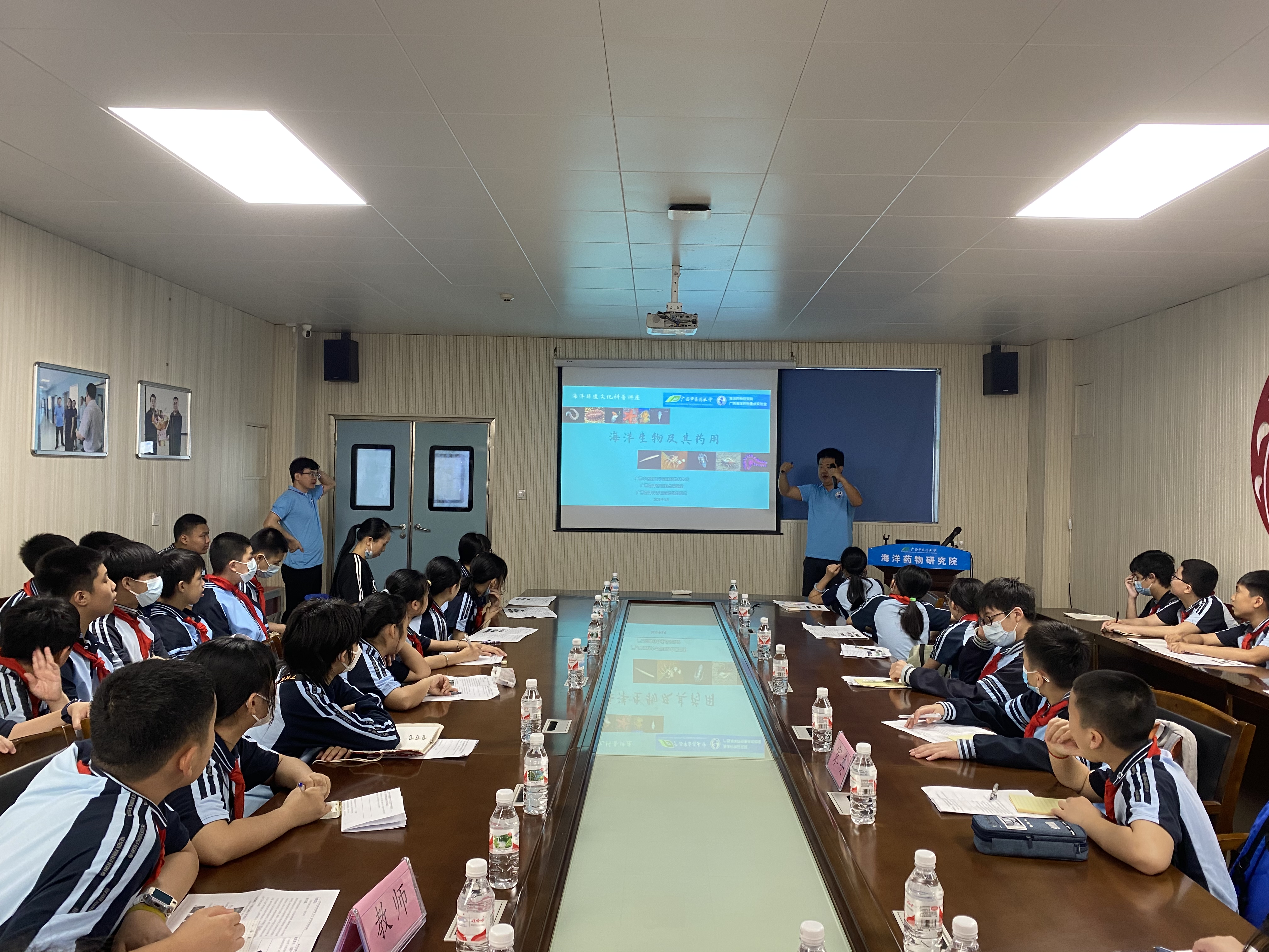 海洋被誉为“蓝色药库”,药用资源丰富,海洋药物是中医药的重要组成部分,应用历史悠久。为普及海洋药物知识,弘扬科学探索精神,2023年3月24日上午,南宁市民主路小学青环校区六年级150余名学生、老师和家长在海洋药物研究院、广西海洋科普和意识教育基地开展了海洋药物科普活动。