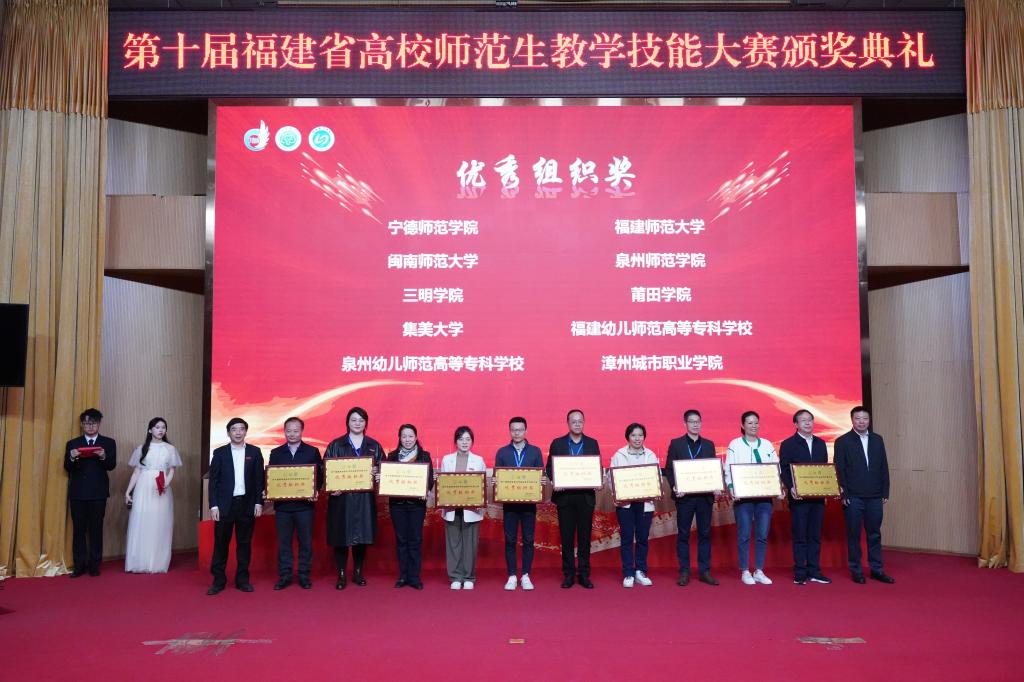 11月24-26日,由福建省教育厅主办、yl7703永利官网承办的第十届福建省高校师范生教学技能大赛在永利官网顺利举行。26日上午,本次大赛颁奖典礼在永利官网图书馆学术报告厅举办,福建省教育厅党组成员、副厅长李绚,福建省教育厅学生工作处处长李俊玮、二级调研员游金茂,永利官网校长魏远竹、副校长颜桂炀出席并为获奖选手颁奖。