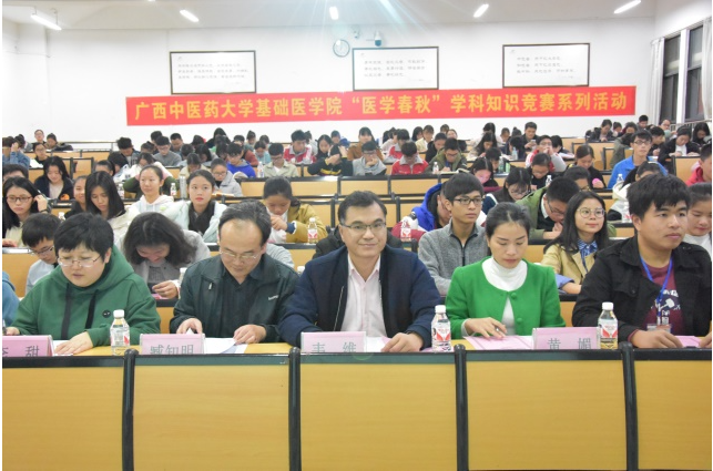 12月21日晚,基础医学院于仙葫校区教学楼成功举办了“医学春秋”学科知识竞赛系列活动之“中医基础理论与中医诊断学知识竞赛”决赛,本次活动由基础医学院团委、学生会与基础医学院中基教研室和中诊教研室联合举办。beat365官方网站教务处副处长韦维老师,中医基础理论教研室臧知明老师,中医诊断学教研室李甜老师,基础医学院学生办公室黄媚老师出席了本次决赛。各参赛队伍及基础医学院各班级代表参与了此次决赛。