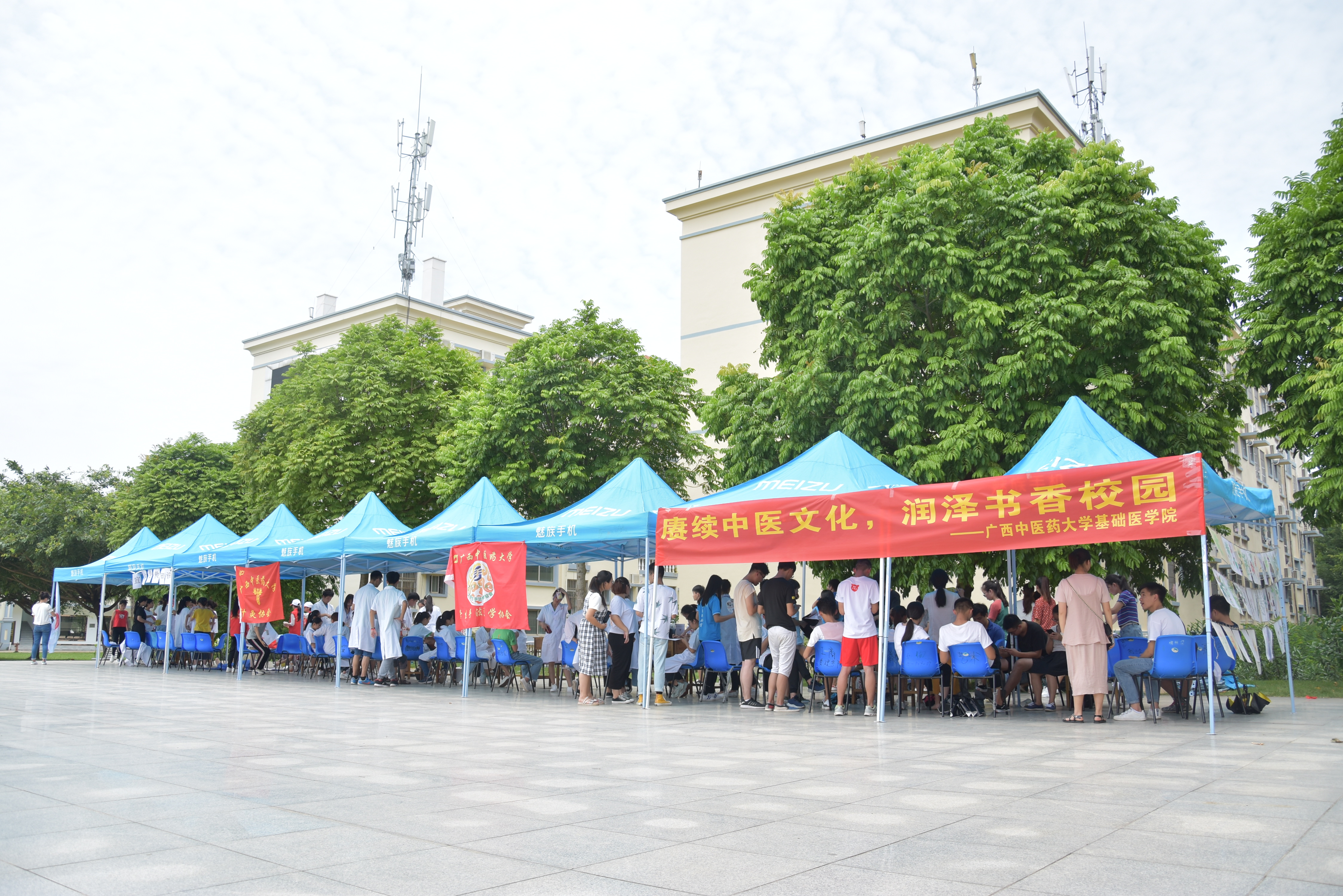 为了提高同学们的社会实践能力,弘扬十九大精神,beat365官方网站基础医学院于6月17日在广西外国语学院举办了“赓续中医文化,润泽书香校园”主题义诊社会实践活动。
