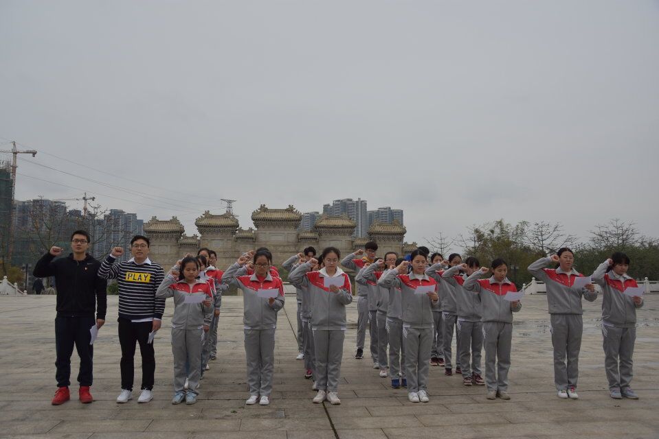 参观结束后,全体人员到达烈士陵园碑。碑上的革命烈士呈砖红色,在空旷的广场中央屹然挺立。和卫宾诵读悼念词以表达对革命先烈的敬重。全体党员重温宣誓入党誓词,之后默哀一分钟,向革命英烈三鞠躬。然后,全体人员在哀悼乐下有序献上白菊花。