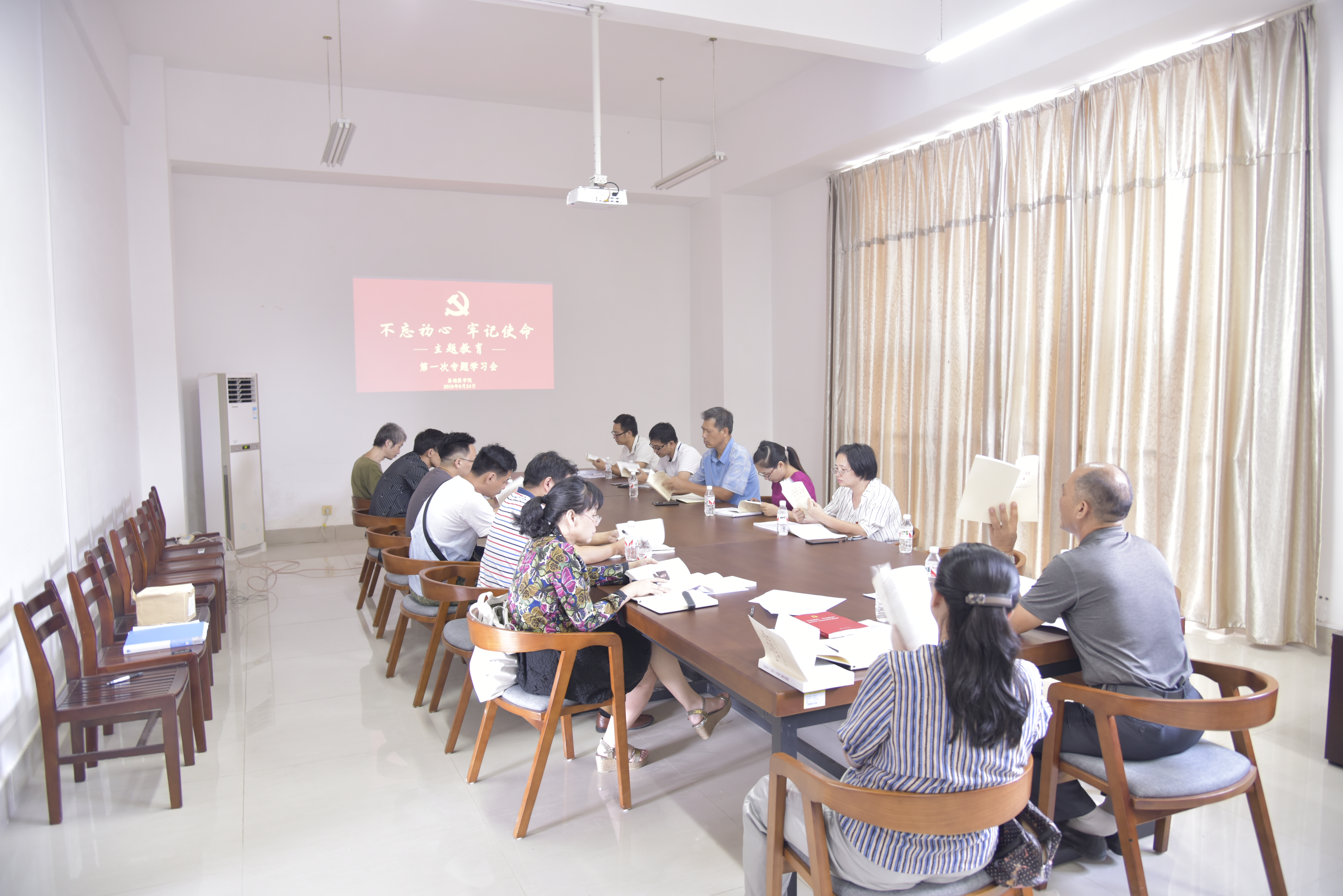 9月24日下午,基础医学院按照学院党委集中学习计划,召开“不忘初心、牢记使命”主题教育第一次集中学习。学院党委班子成员、党支部书记参加学习。党委书记龚名师主持会议。