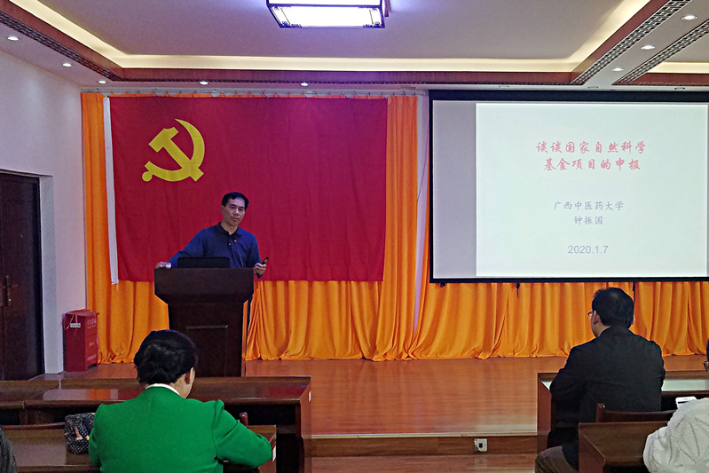 会议特邀广西中医药科学实验中心钟振国教授结合自身多年科研工作的实践与体会,开展报告,深入、细致地讲解国家自然科学基金申请书撰写的要点和心得,会议气氛热烈,会议开展顺利圆满。