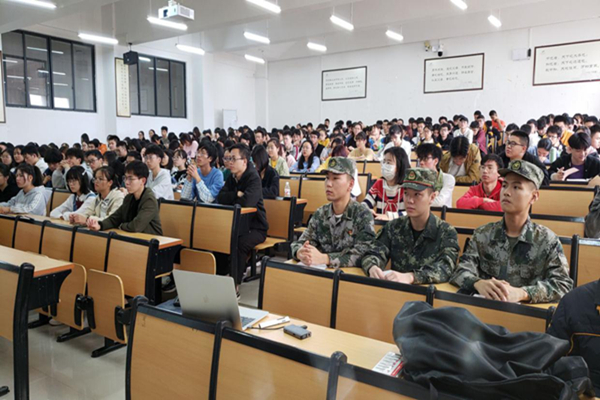王怿清教员从同学们的切身利益出发,从入伍的学业优待、就业优待、奖励及补助各方面对当兵的好处进行了详细分析和讲解,让同学们更加切身的感受到了当兵的现实意义,为同学们的大学生涯和职业生涯指明了又一方向和出路。何子拓、曾祥军和梁海林三名退伍同学给在座观众讲述了军旅生涯的多姿多彩和酸甜苦辣,让在座的同学们了解了当兵不为人知的一面,以及当兵能给一个人带来的改变。