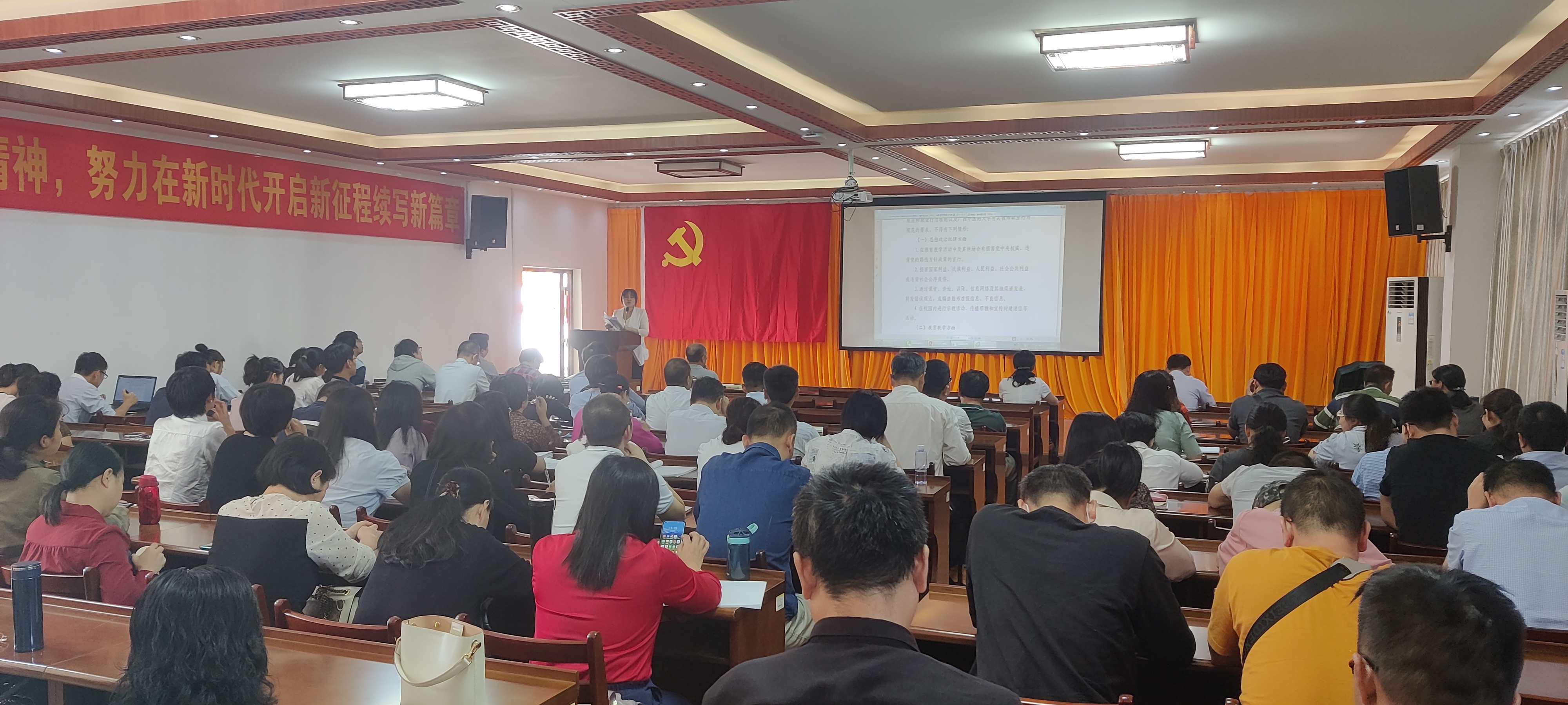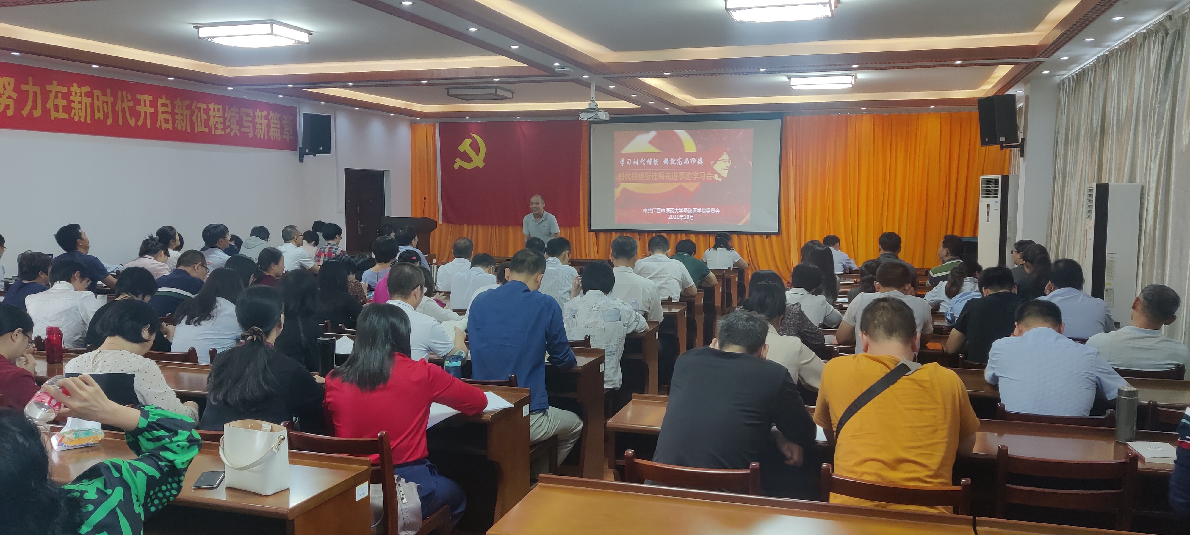 为切实推动党史学习教育与师德师风建设协同推进,切实提高教师思想政治素质和职业道德水平,落实立德树人根本任务。根据基础医学院“学党史·明师德·助发展”师德师风主题教育活动的安排,10月12日下午,基础医学院召开师德师风教育大会,组织全体教职工学习了学校关于师德师风考核的相关文件,观看了“时代楷模”张桂梅老师的先进事迹视频。会议由学院党委书记龚名师主持。