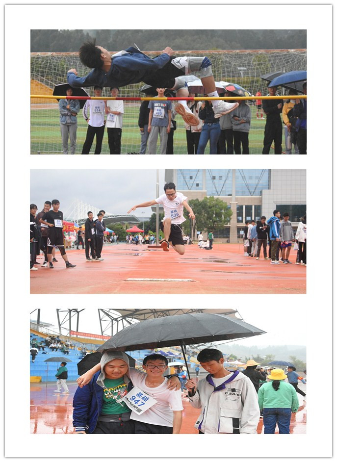 两天赛事,阴雨绵绵,天气湿冷,雨水打湿了赛场,遮挡了视线,但我院运动健儿们依旧雄姿英发,风雨无阻,迎难而上。他们似脱缰野马,用汗水和泪水诠释着青春姿态,用每一次冲刺、每一次跳跃、每一次投掷,展现着青春风采。赛场之外,各个班级组织拉拉队,挥舞着班旗,呐喊声、加油声、鼓掌声响彻赛场,为运动员递上一杯水,搀扶起力竭运动员,举着院旗场外和远动员一起奔跑,他们用自己行动展现我院学子团结友爱,相互帮助精神品质。裁判员严格遵守比赛规则,志愿者辛勤付出,积极发扬奋发有为、吃苦耐劳的精神。两天赛事,两天雨,雨水没有浇灭同学们热情,反而激发我院学子激情。赛事结束,举行隆重闭幕式,为获得精神文明奖、团体总分前八名班级进行颁奖。最后,伴随着激昂的乐队表演,基础医学院第三十届大学生田径运动会圆满落幕。