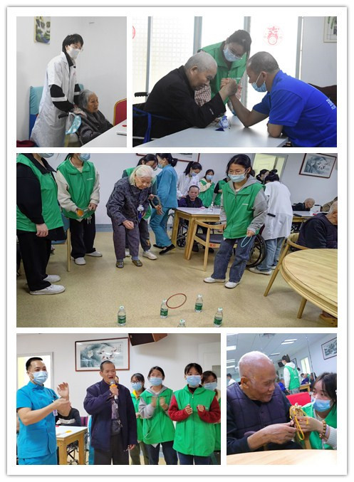 本次“学雷锋,敬老爱老”主题志愿服务活动,为了更好为养老院的老人带来青年大学生热情关怀和关爱,前期进行精心准备和策划,本次活动筹备了四个小组分别进行。后勤组为我们老人赠送志愿者亲手制作的养生安神香囊、坐垫、拍痧板等物品,志愿者详细为老人们介绍物品使用方法和保健作用,并和老人进行愉悦交流;手法按摩组为老人提供热情周到手法按摩、推拿等服务,老人们为志愿者的善举善为深深感动;宣讲组主要开展有关老年人中医养生保健、强身健体等相关内容宣讲,老人们对志愿者认真讲解给与充分肯定和认可,并主动向我们志愿者询问相关保健养生问题,志愿者结合自身医学专业进行详细解答,老人们脸上洋溢着开心笑容;游戏组的志愿者为我们老人精心组织套圈等游戏等,老人们和志愿者们一起参与,玩得不亦乐乎,身心得到一次充分释放;娱乐组带来了歌曲、传统体育等表演,还和我们老人们一起合唱歌曲,一片欢声笑语。