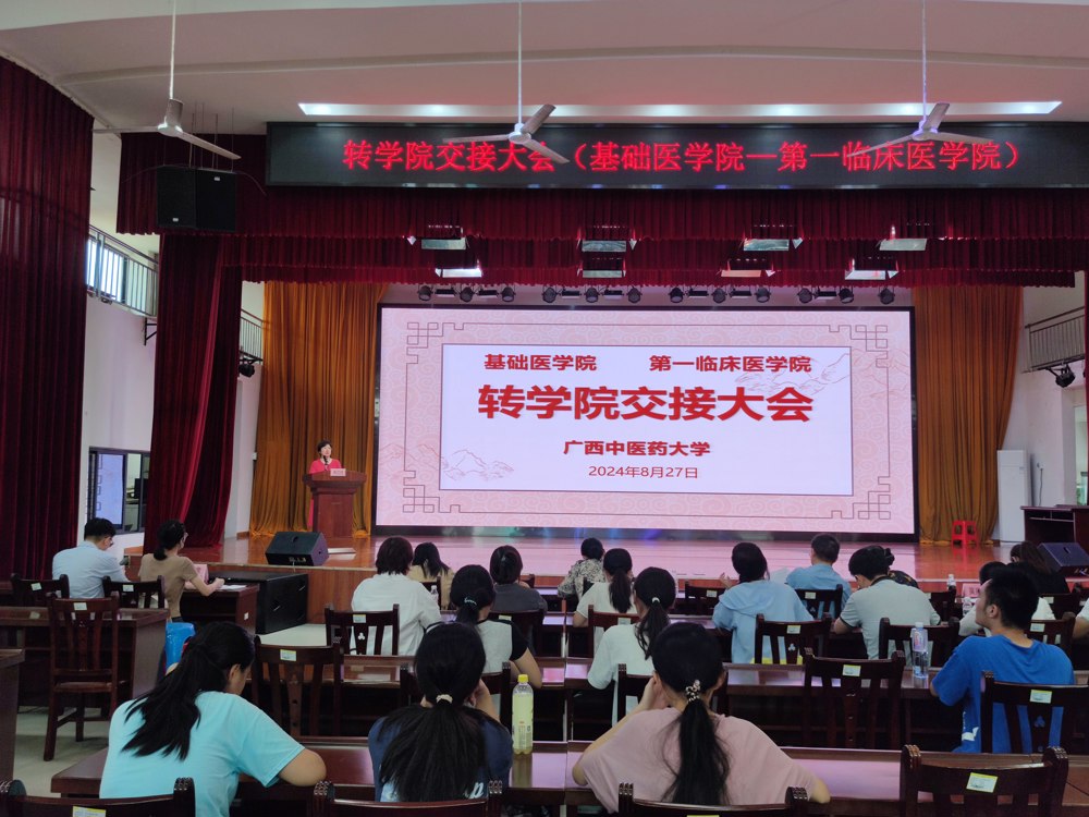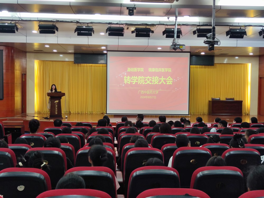 8月27日上午,基础医学院2022级本科生的转学院大会在beat365大学生活动中心小礼堂和图书馆二楼会议室隆重举行。基础医学院党委书记周江煜、院长邓鑫、党委副书记李豫萍与第一临床医学院、瑞康临床医学院的领导、老师30余人,以及2022级13个专业,20个班,1155名医学类2022级本科生参加了转学院大会。
