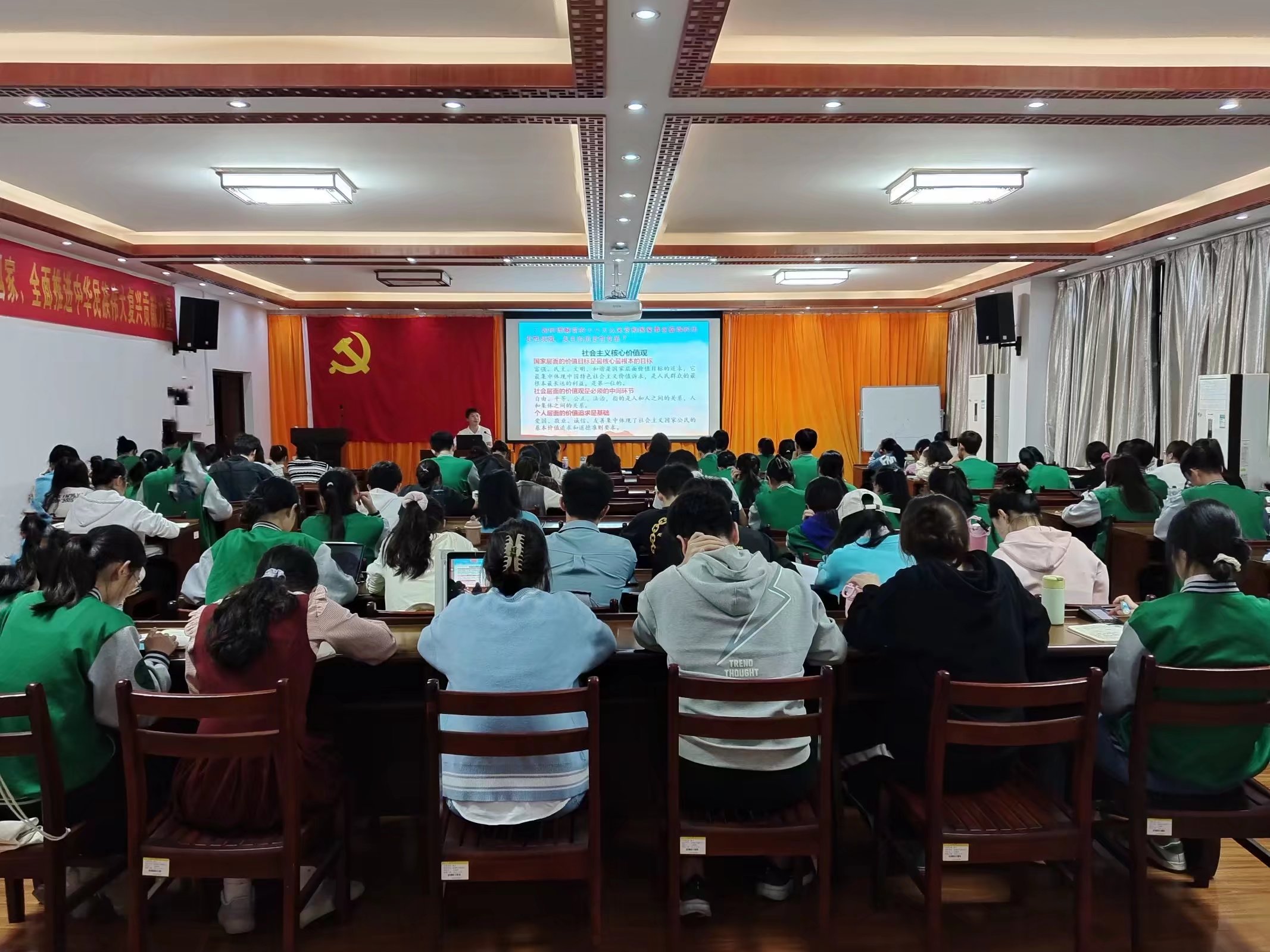 为深入学习宣传贯彻党的二十大精神,不断加强对入党积极分子的培养教育,引导入党积极分子坚定正确政治方向,端正入党动机,基础医学院于11月17日晚在达道楼A305顺利开展第25期入党积极分子暨第23期发展对象培训班专题党课第四讲。学院党委组织员潘雄泽为第23期党员发展对象、第25期入党积极分子上了题为“党的二十大报告学习辅导”的专题党课。