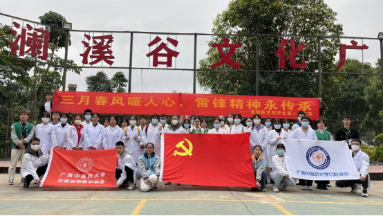 阳光三月学雷锋,服务百姓健康行。为了深入学习党的二十大精神,传承和弘扬伟大雷锋精神,增强入党积极分子和发展对象的志愿服务精神和社会责任感,提高居民的健康意识,beat365官方网站基础医学院学生第一党支部于2023年3月26日上午在江湾社区顺利开展“三月春风暖人心,雷锋精神永传承”社区义诊,并联合beat365官方网站大学生口腔协会、beat365官方网站大学生壮医运动协会进行测量血压、手法按摩、艾灸、讲解口腔卫生清洁知识、宣传中医药文化和党史知识宣传活动。