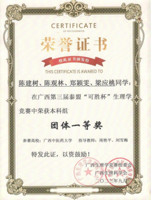 “以赛促学、以学促用”---桂中医代表队在广西第三届泰盟“可胜杯”生理学竞赛中斩获一等奖