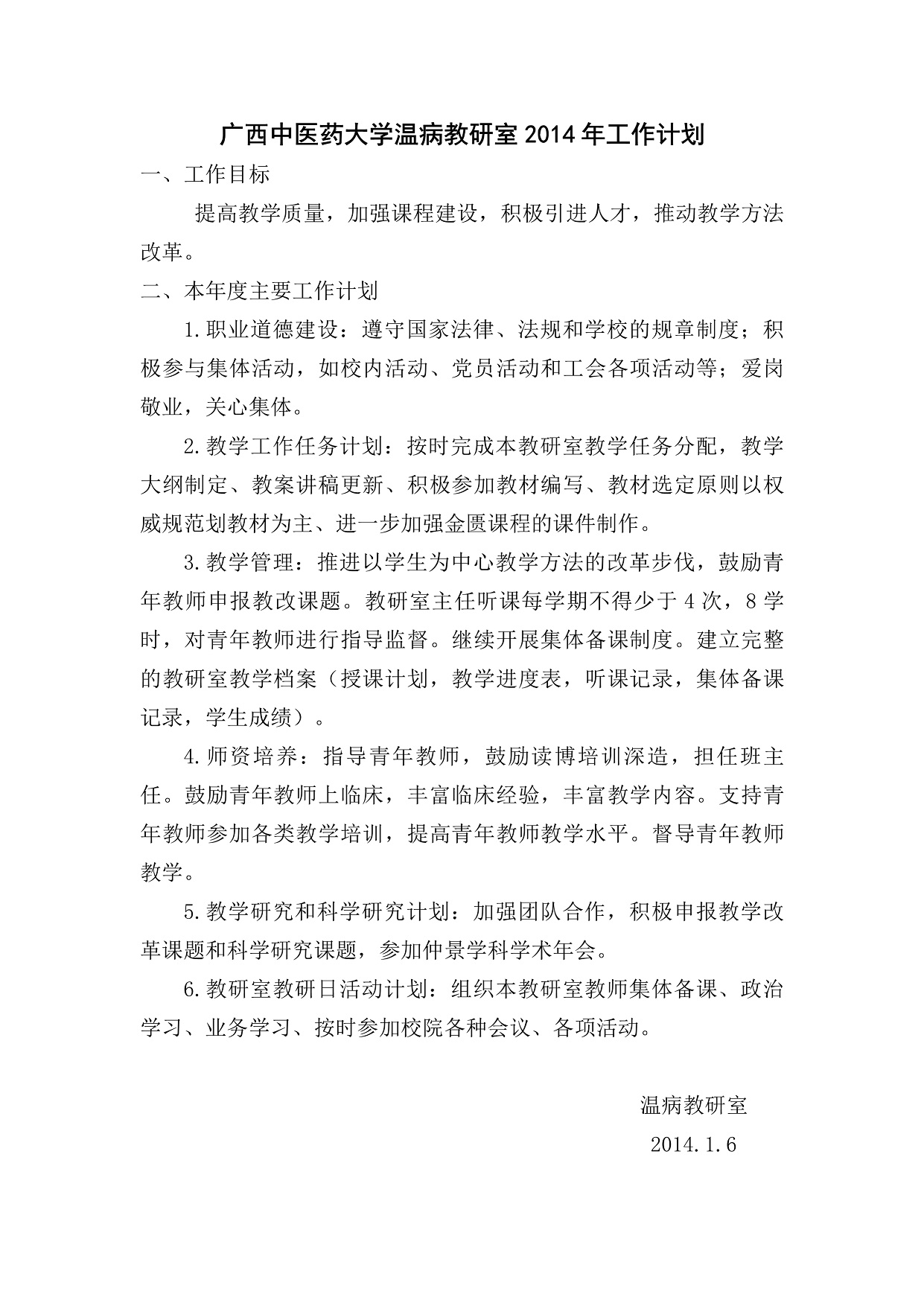 2014年教研室工作计划
