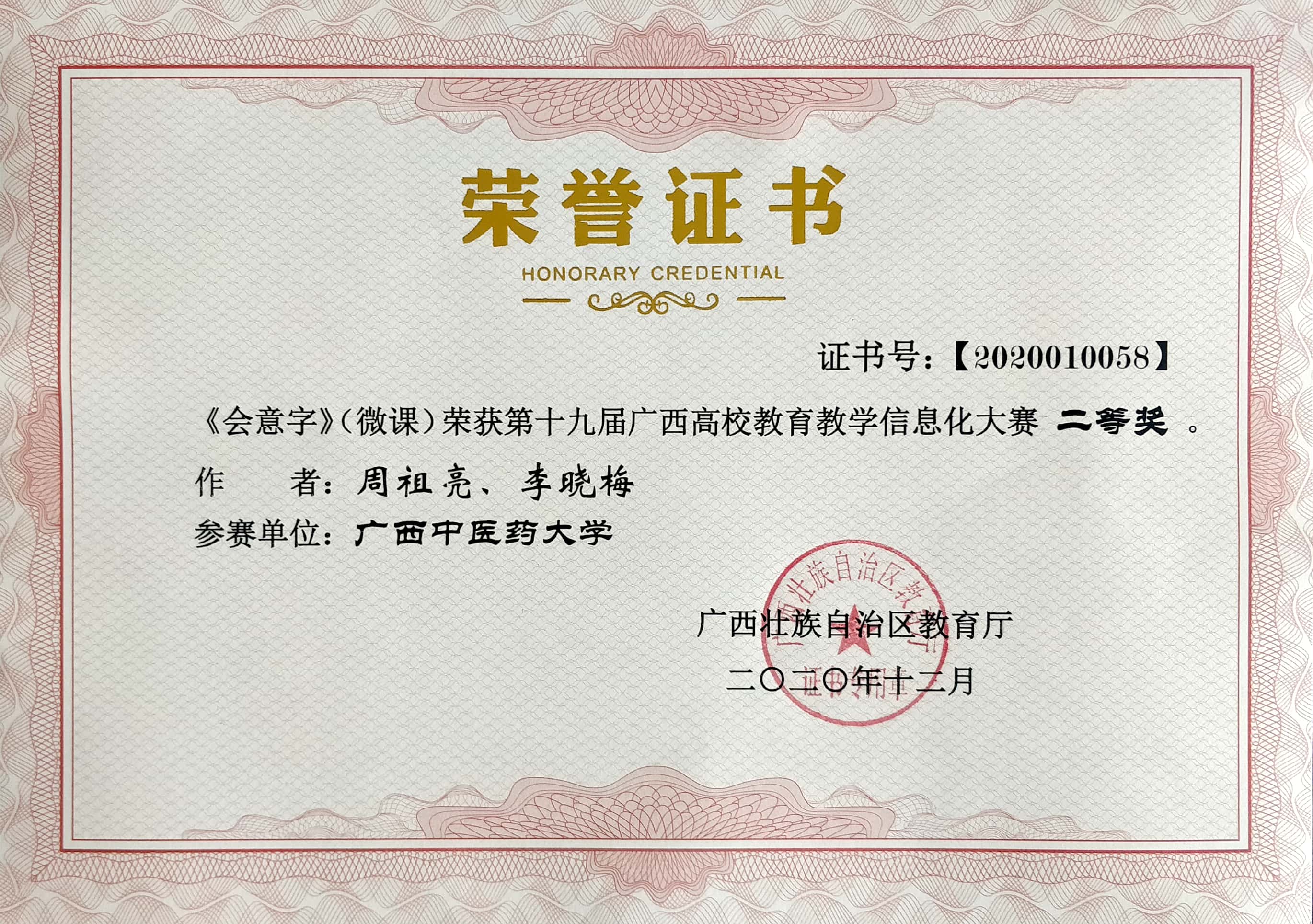 【喜讯】医古文教研室微课作品在第十九届广西高校教育教学信息化大赛中获奖 来源:本站原创 作者:医古文教研室 发布时间:2021-12-07 14:58:42 浏览次数: 次 【字体:小 大】 2020年11月14日,第十九届广西高校教育教学信息化大赛(现场决赛)在广西大学行健文理学院相思湖校区举行。我教研室周祖亮、李晓梅两位老师制作的微课作品《会意字》在竞赛中荣获二等奖。李晓梅老师在决赛现场参与答辩李晓梅老师(左三)与beat365参赛团队工作人员合影获奖证书(扫描件) 分享到: 【打印正文】