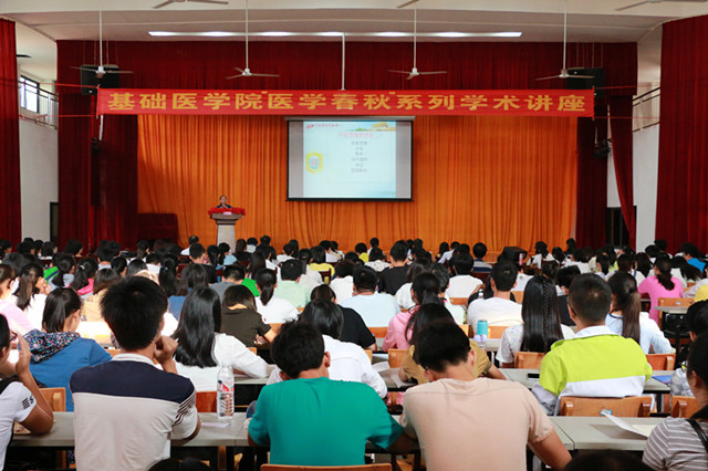 2015年11月24日,由基础医学院举办的“医学春秋”系列学术讲座之“从实际剖析中医思维对科学方法的影响”讲座在大学生活动中心小礼堂隆重举行,主讲人为基础医学院院长林江教授。基础医学院党委副书记龙春莉老师、基础医学院副院长肖健教授、壮医药学院韦杏副院长,基础医学院各教研室老师、基础医学院学生工作办公室老师及基础团委、学生会、各班级代表等参加了此次讲座。