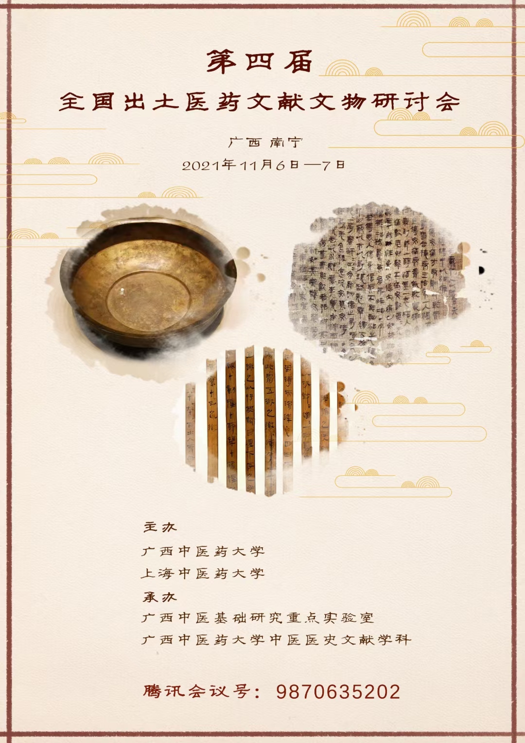 第四届全国出土医药文物文献研讨会在beat365顺利召开 发布时间:2023-05-08 14:27:53 浏览次数: 次 【字体:小 大】 来源:本站原创 作者:医古文教研室 发布时间:2021-12-07 15:41:50 浏览次数:54 次 【字体:小 大】 2021年11月6日-7日,第四届全国出土医药文献文物研讨会在beat365召开。会议由beat365与上海中医药大学联合主办,广西中医基础研究重点实验室与beat365官方网站中医医史文献学科承办。医古文教研室承担了会议组织工作。 会议邀请了来自中国社科院、中国文化遗产研究院、中国中医科学院、清华、复旦等多所科研单位、文博院所及高校学者专家作相关学术报告。beat365部分师生通过网络直播或现场旁听的形式参与会议。会议报告内容丰富,精彩纷呈,令与会师生受益匪浅。会议宣传海报 分享到: 【打印正文】