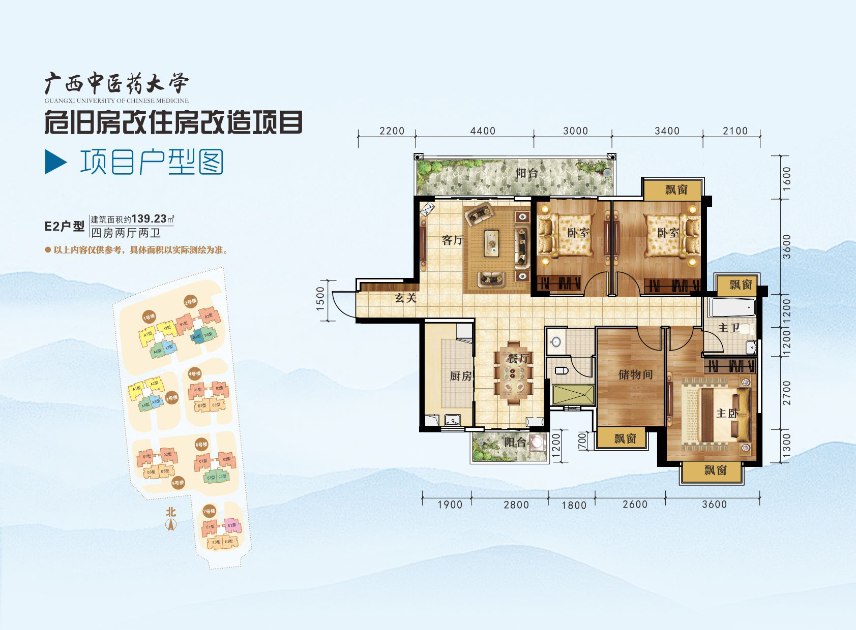 四房两厅两卫(约139.23㎡):7号楼(E2户型)