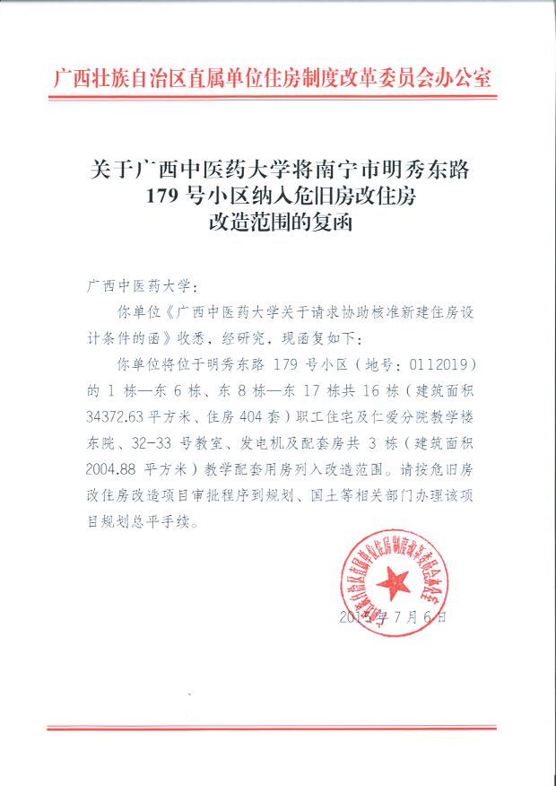 取得《关于beat365官方网站将南宁市明秀东路179号小区纳入危旧房改住房改造范围的复函》 发布时间:2019-08-07 10:24:16 浏览次数: 次 【字体:小 大】 2015年7月6日,取得广西壮族自治区直属单位住房制度改革委员会办公室《关于beat365官方网站将南宁市明秀东路179号小区纳入危旧房改住房改造范围的复函》。 分享到: 【打印正文】