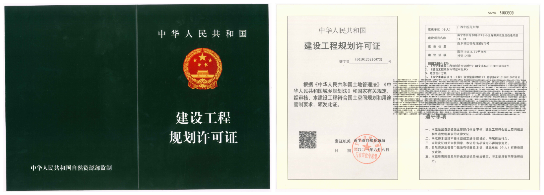 2021年6月,beat365向南宁市自然资源局递交办理项目建设工程规划许可证申请。在学校与代建公司的共同努力下,经自然资源局审批、项目缴纳城市基础设施配套费等手续,项目于2021年10月12日取得《建设工程规划许可证》。