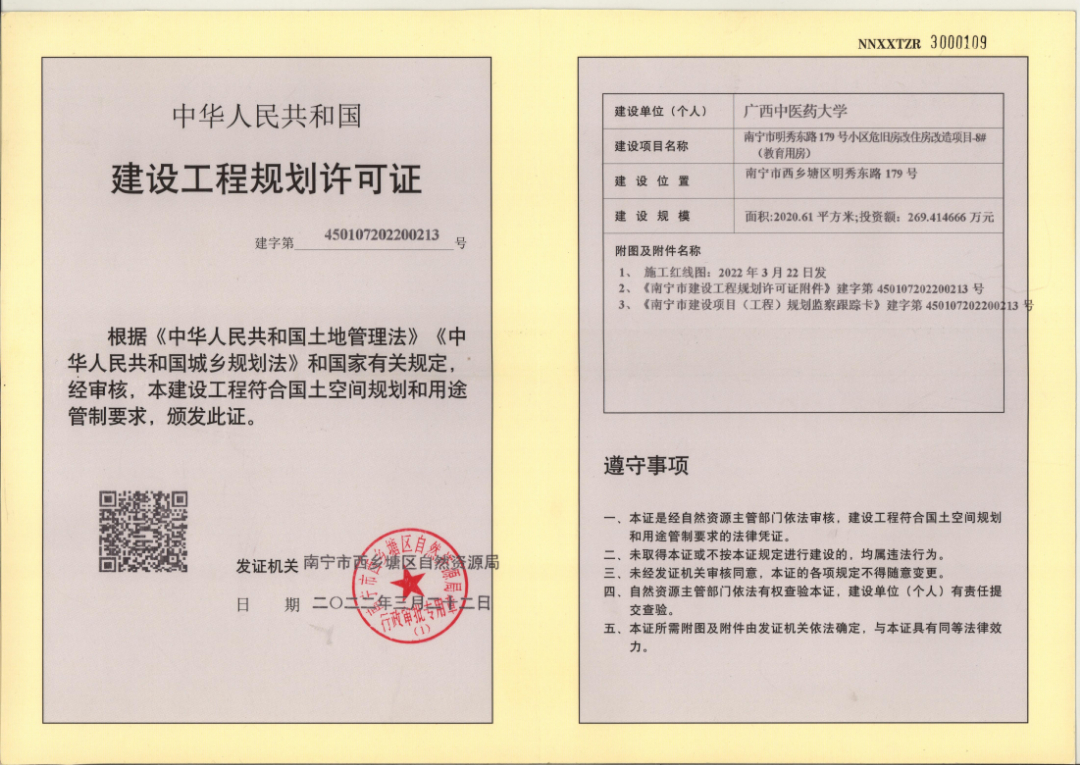 根据项目推进进度及上级主管部门审批要求,2022年1月,beat365向南宁市自然资源局递交办理项目回建教育用房建设工程规划许可证申请。经自然资源局审批,项目向自然资源局交纳城市基础设施配套费,并于近日办理取得《建设工程规划许可证》。