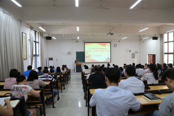 9月25日上午,教学教辅党委在仙葫校区教学楼2-102教室召开“不忘初心、牢记使命”主题教育工作会议,按照中央、自治区党委和学校党委的部署要求,对教学教辅党委开展主题教育进行动员部署。校“不忘初心、牢记使命”主题教育领导小组办公室第二督导组组长、统战部部长姜建萍出席并讲话,第二督导组成员邬文燕、罗金兰到会指导。教学教辅党委全体党员参加了会议。