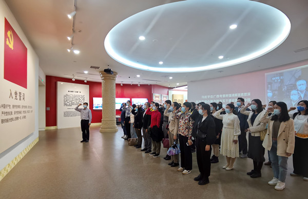 11月12日下午,教学教辅党委书记罗晓燕、副书记李荣源带领党员到广西展览馆开展党史学习教育主题党日活动。