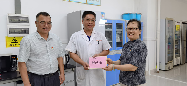 7月1日上午,教学教辅党委书记罗晓燕到教学实验实训中心党支部慰问生活困难党员,了解党员的思想动态、工作及生活情况,送上党的关怀和温暖,并致以节日的美好祝福。