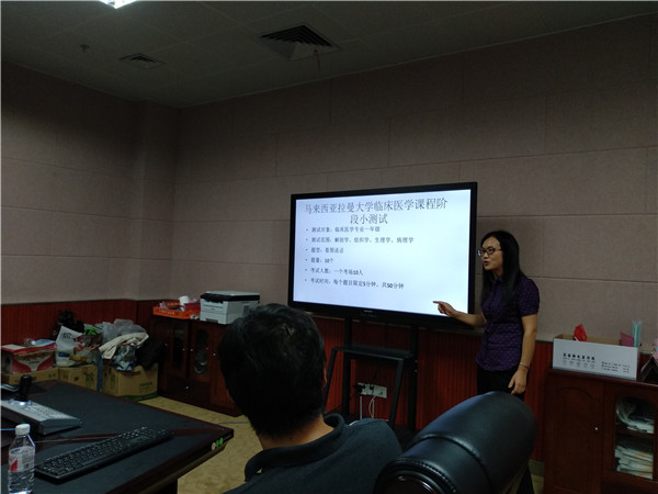 本场沙龙活动由基础医学院的韦燕飞、张齐两位老师主讲,韦老师和张老师均是从马来西亚拉曼大学完成教学能力提升培训的教师队伍中的一员。首先,两位老师通过播放视频的方式让在座教师对拉曼大学的培训有了初步的了解,接着,张老师以“临床病例于基础教学中的应用”为主题,向在座教师介绍了马拉西亚拉曼大学的教学方法,并分享了自己在教学方面的一些收获。最后,韦老师就“医学课程阶段综合小测试与beat365转段考试现状的观察和对比”的主题,用生动形象的案例详细介绍了拉曼大学临床医学课程阶段小测试的内容,对其中看图说话的题型在座教师都表示值得借鉴。