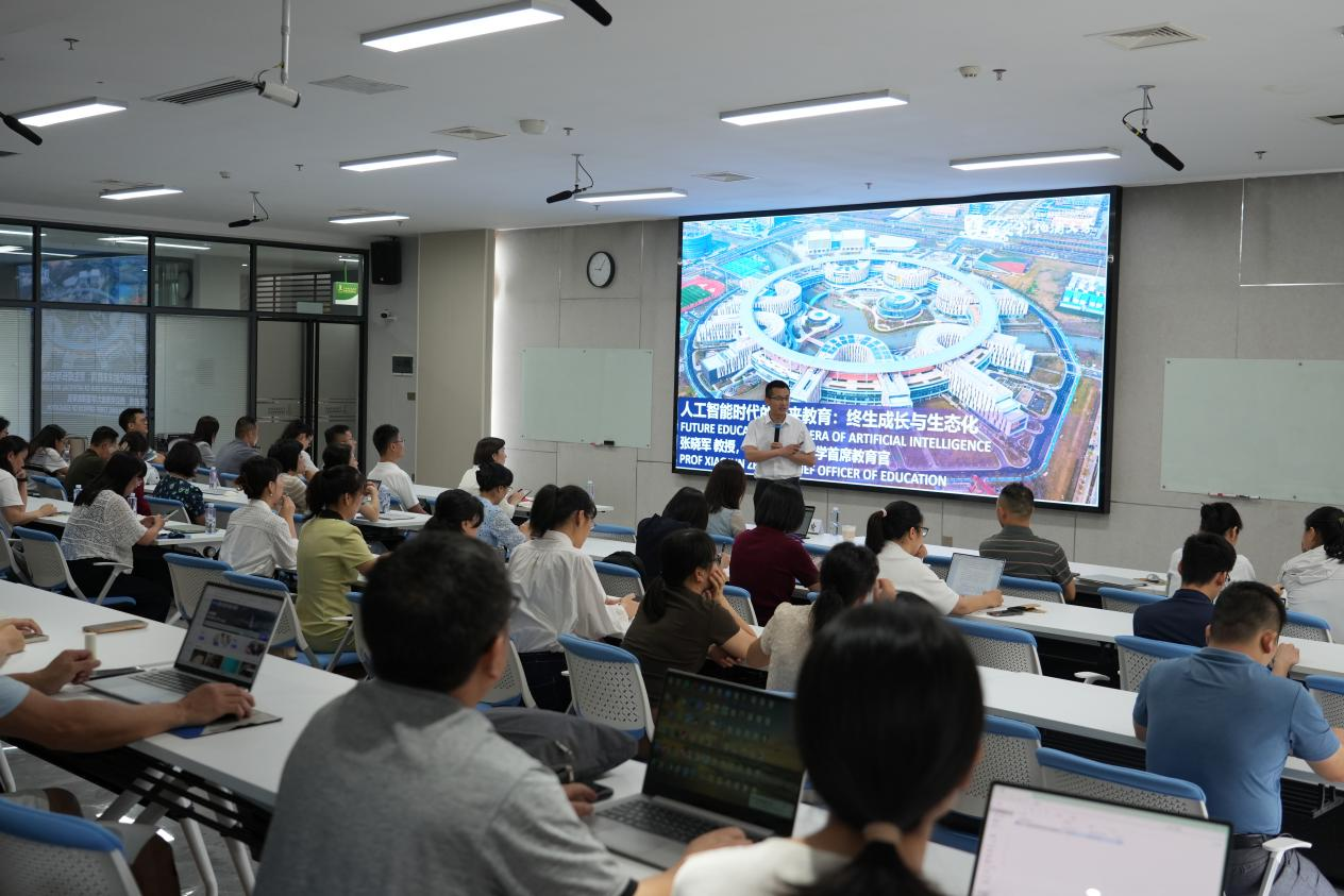 2025年6月30日,beat365在仙葫校区成功举办“面向未来的教学创新与人工智能时代的未来教育”专题讲座。本次讲座特邀西交利物浦大学首席教育官、未来教育学院执行院长张晓军教授担任主讲,由教师教学发展中心主任朱珠主持,吸引了全校各院系150余名教师及教育工作者积极参与。