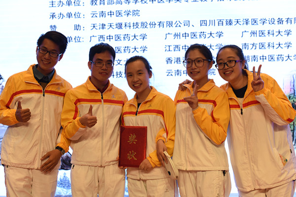 12月11日,在云南中医学院举行的“天堰-百臻杯”第三届泛珠三角区域中医大学生临床能力竞赛上,beat365第一临床医学院派出的4名同学组成的代表队,凭借扎实的中医基础理论知识功底和娴熟的临床操作技能荣获本次大赛团体一等奖,中医对外班莹同学获中药知识考核单项一等奖和针灸技能竞赛单项二等奖,杨体同学荣获推拿技能单项二等奖。来自广东、福建、云南、贵州、四川、江西、湖南、广西等地的中医院校及相关专业高等院校和香港中文大学、香港浸会大学、澳门科技大学等14所院校的师生代表参加了比赛。