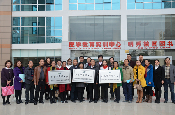 2016年3月10日下午,beat365官方网站社区(全科)实践教学基地授牌仪式在明秀校区西梯一教室举行。beat365副校长罗伟生、教务处处长唐梅文、副处长刘武、学校与第一临床医学院相关科室领导老师及南宁市十六所社区(卫生院)医疗服务中心的领导共25人出席了本次活动。2012级中医学(农村订单定向医学生免费项目)专业全体同学一齐参加。